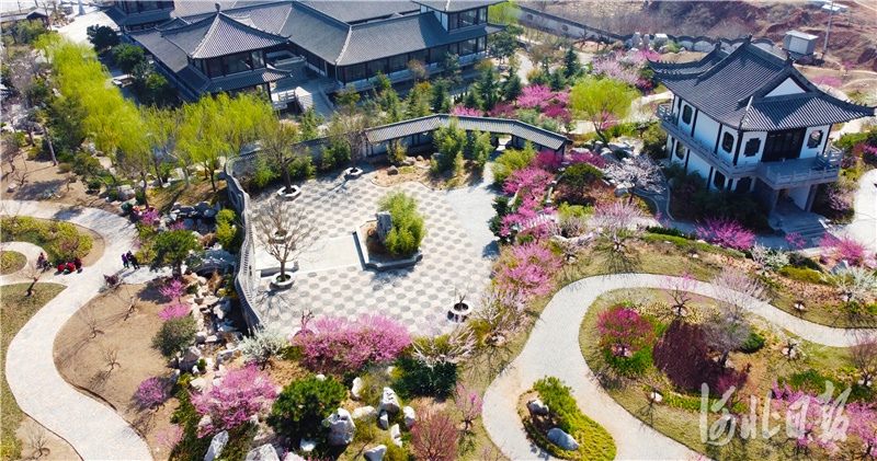 3月17日,无人机拍摄于邯郸市磁县磁州水墨园梅园。连日来,该园内的梅花竞相绽放,春意盎然,在仿古建筑的映衬下,格外美丽,吸引人们前来观赏采风。河北日报记者史晟全摄影报道