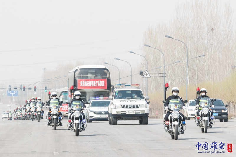 警车开道、快骑护送,以“最高礼遇”护航白衣战士返程。中国雄安官网记者李鑫 摄
