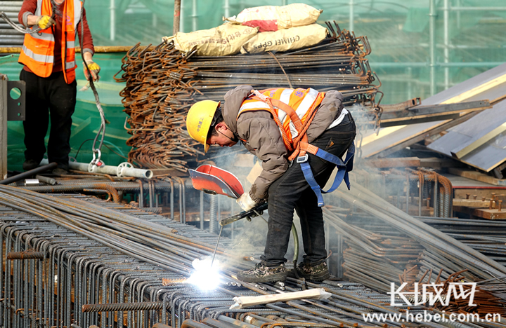 京雄城际铁路雄安站建设者正在作业。霍少轩 摄