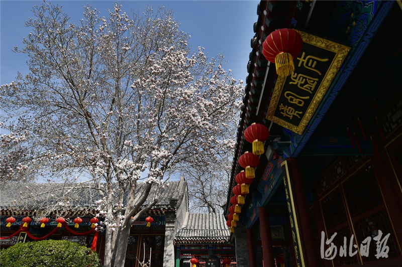 2020年3月16日,正定荣国府内,植于1986年的玉兰花开满树。河北日报记者赵海江 摄