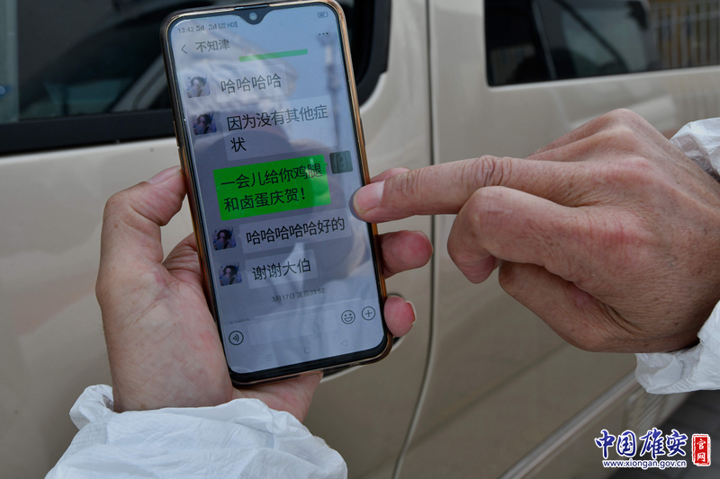 雄安新区入境疫情防控驻京专项工作组人员通过微信与入境人员联系,帮助他们舒缓紧张情绪。中国雄安官网发
