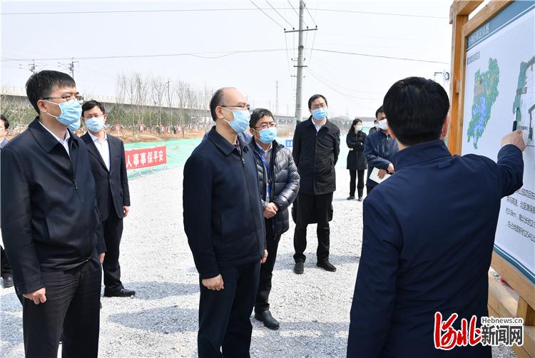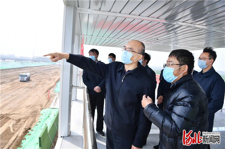 3月30日,省长许勤到雄安新区调研检查。这是许勤来到白沟引河右堤防洪工程工地现场,登上瞭望台查看生态防洪堤整体布局。河北日报记者孟宇光 摄