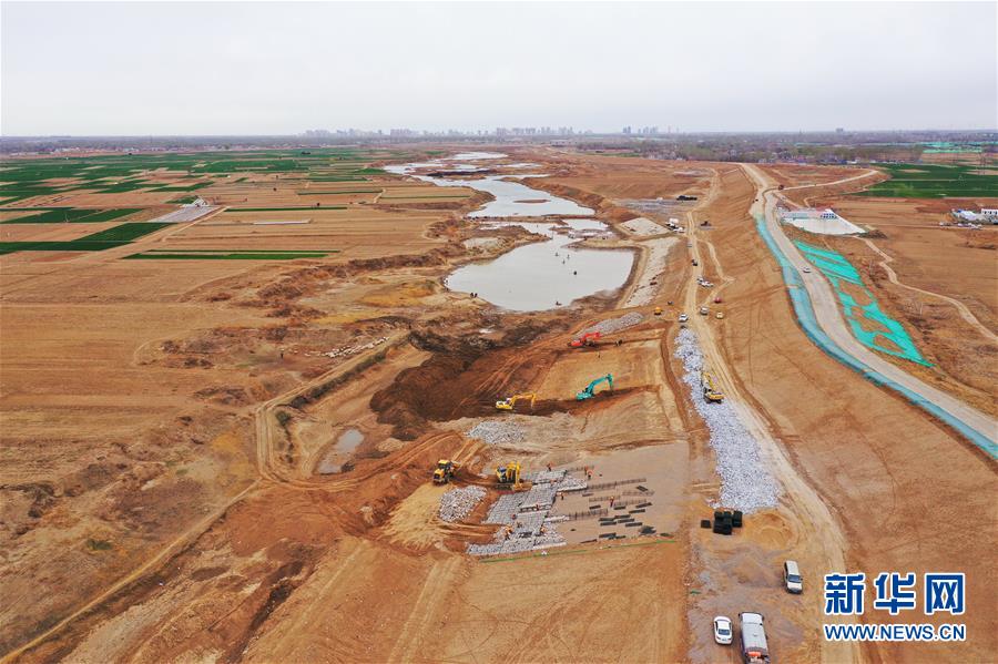 这是3月26日拍摄的雄安新区南拒马河防洪治理工程(容城段)施工现场(无人机照片)。河北雄安新区即将年满三周岁。自转入大规模实质性建设阶段以来,雄安新区多项重点项目建设有序推进,正向着高质量发展的“未来之城”稳步迈进。新华社记者 杨世尧 摄
