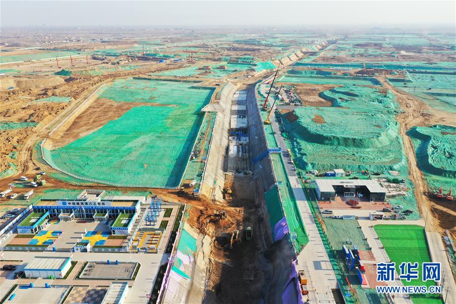 河北雄安新区容东片区综合管廊项目施工现场(3月17日拍摄,无人机照片)。新华社记者 牟宇 摄