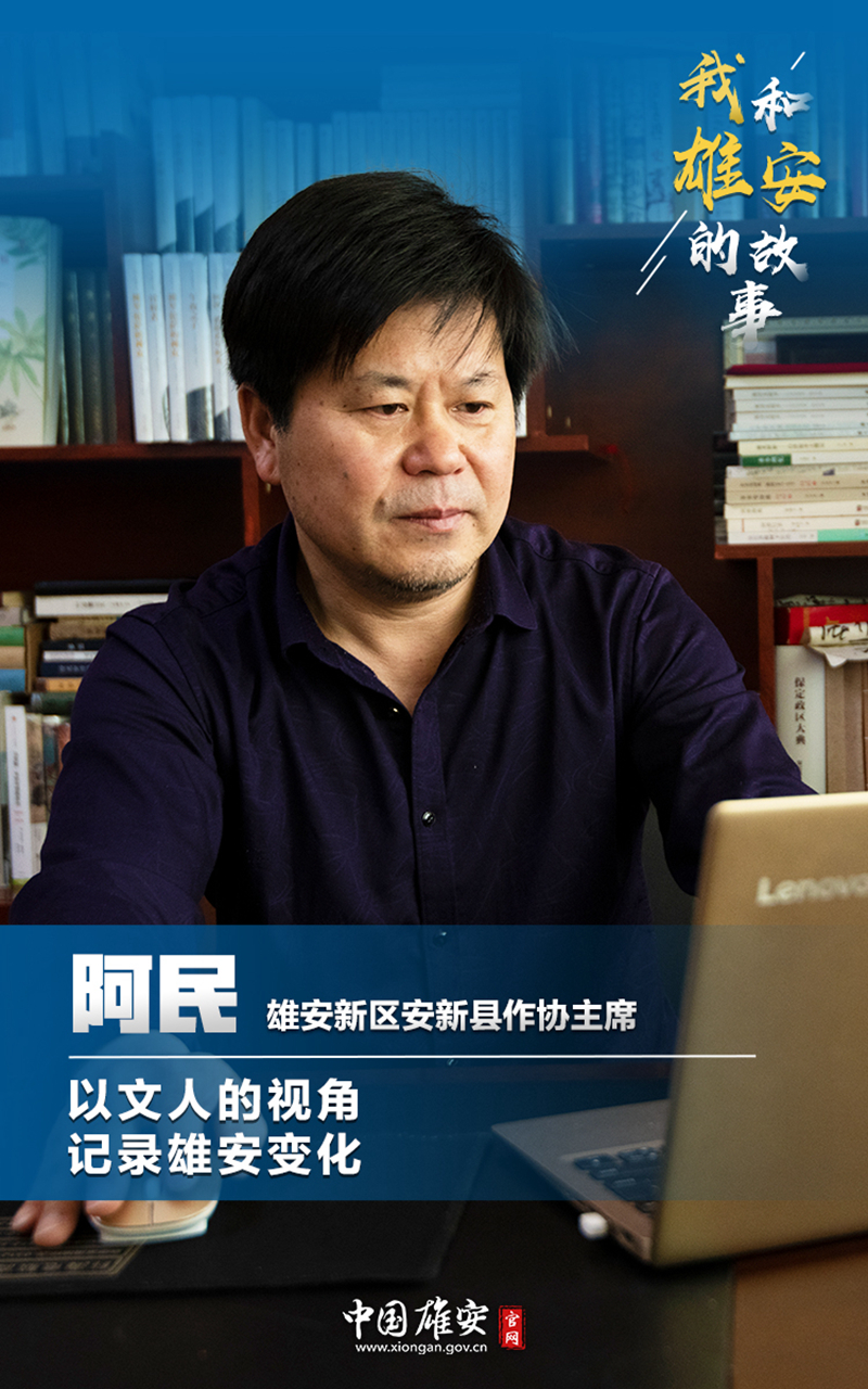 中国雄安官网的网友,大家好!欢迎收听雄安之声系列节目《我和雄安的故事》,今天我给大家讲述《安新县作协主席阿民:以文人的视角,记录雄安变化》。