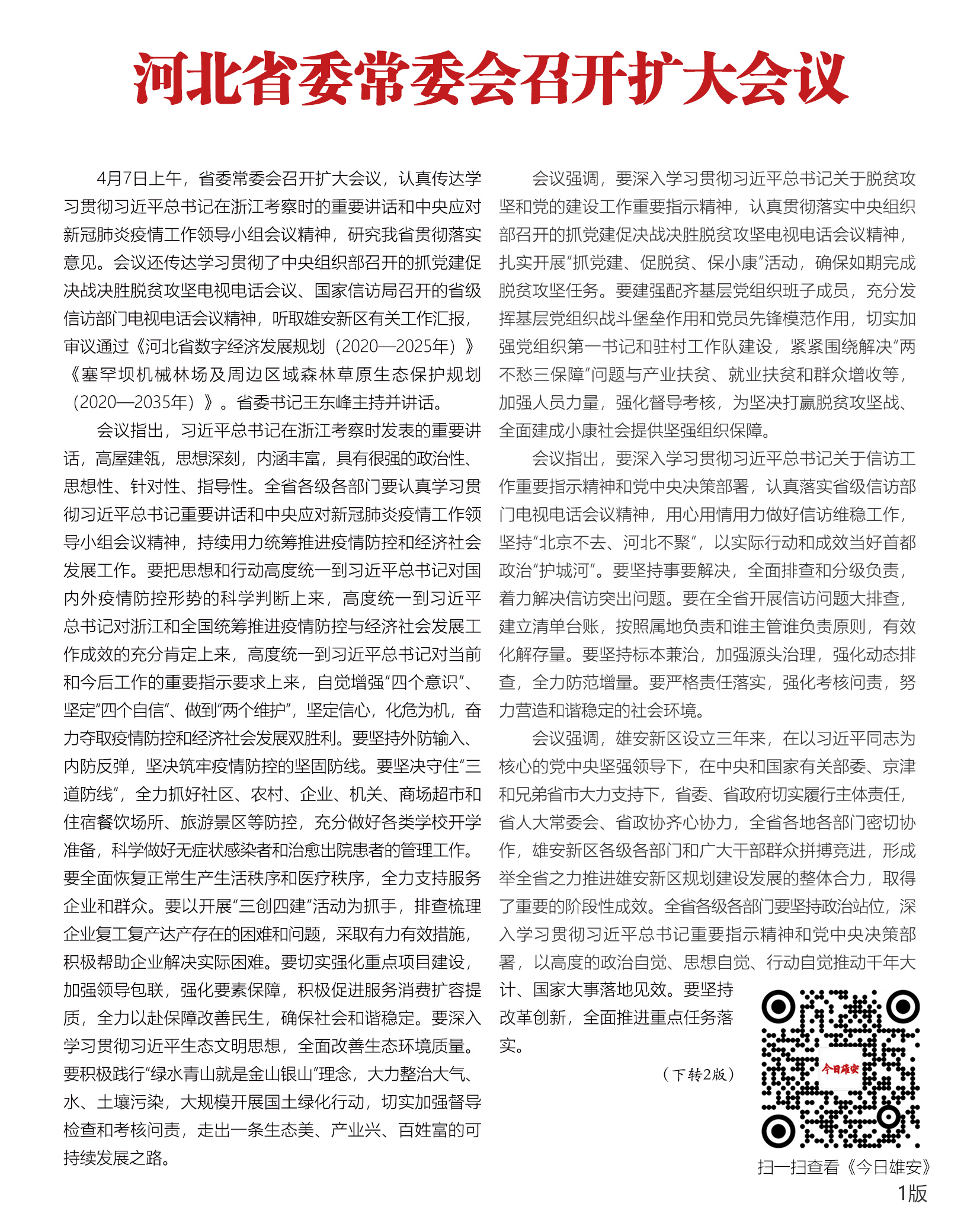 河北省委常委会召开扩大会议 王东峰主持并讲话