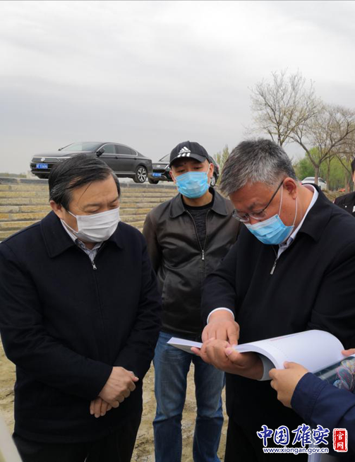 调研组在白洋淀景区码头升级改造工程现场。雄安新区公共服务局供图