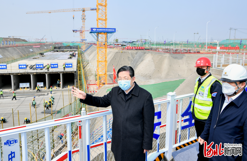 4月10日,省委书记、省人大常委会主任王东峰到雄安新区调研检查。这是王东峰在雄安商务服务中心项目建设现场,察看工程进度,推动建设工作。河北日报记者赵威 摄