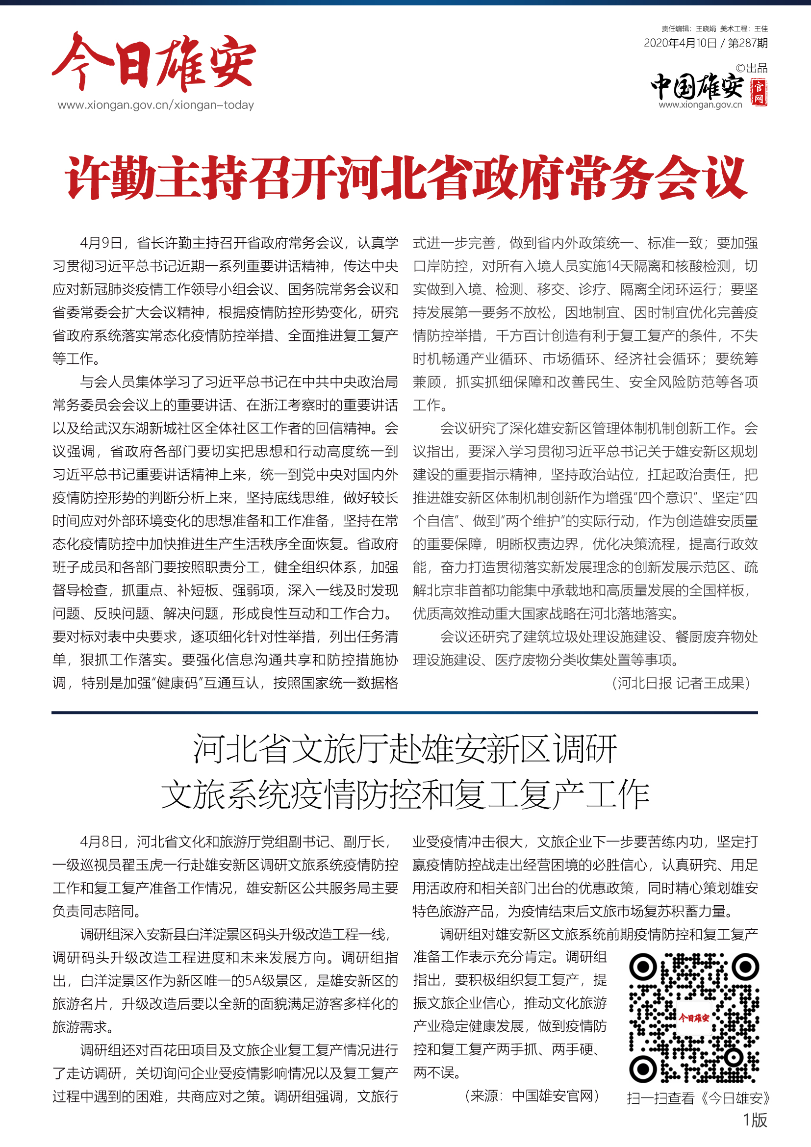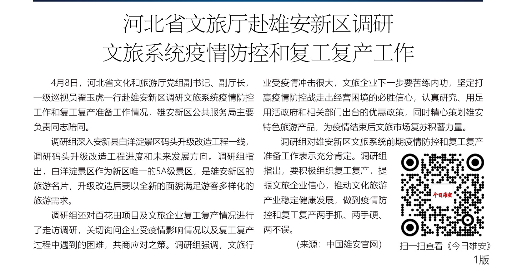 河北省文旅厅赴雄安新区调研文旅系统疫情防控和复工复产工作
