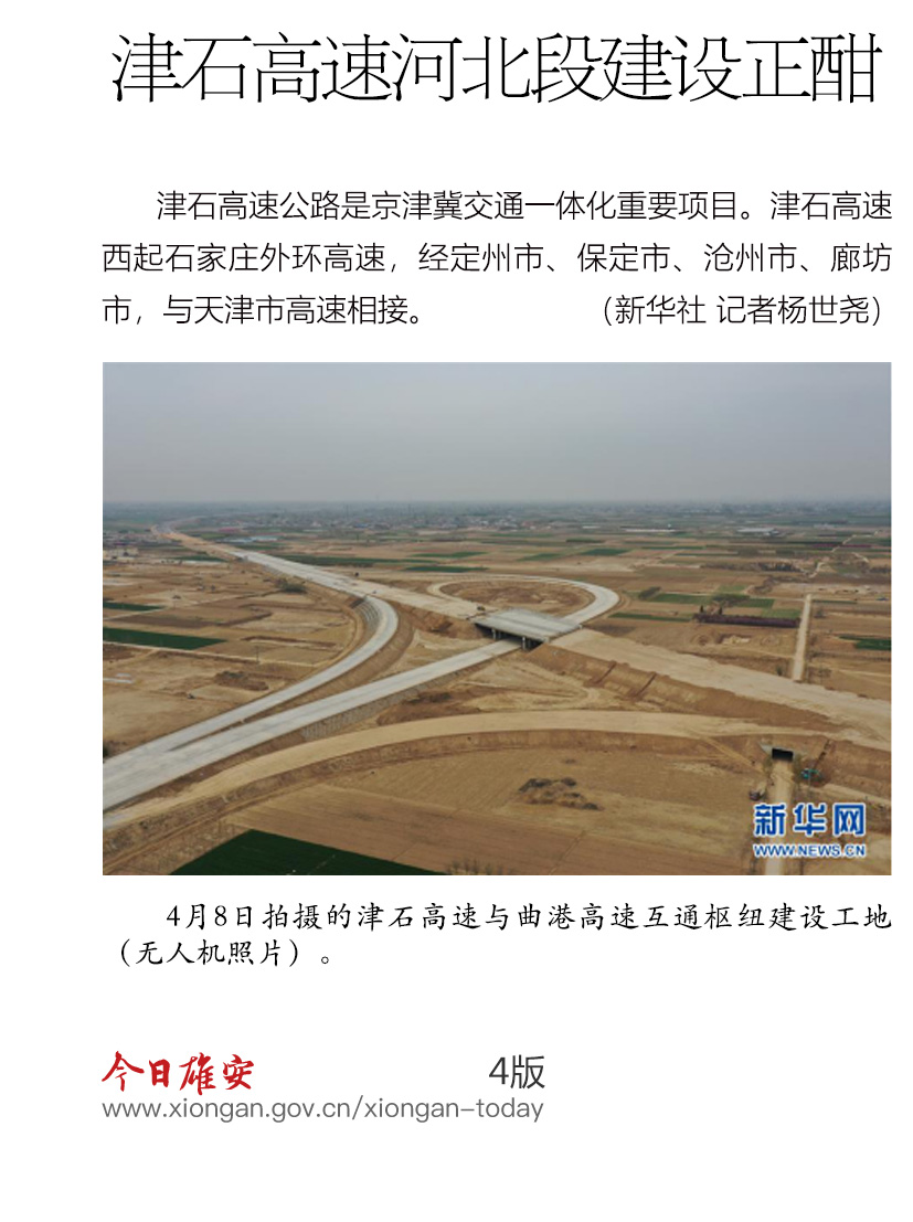 津石高速公路是京津冀交通一体化重要项目。津石高速西起石家庄外环高速,经定州市、保定市、沧州市、廊坊市,与天津市高速相接。
