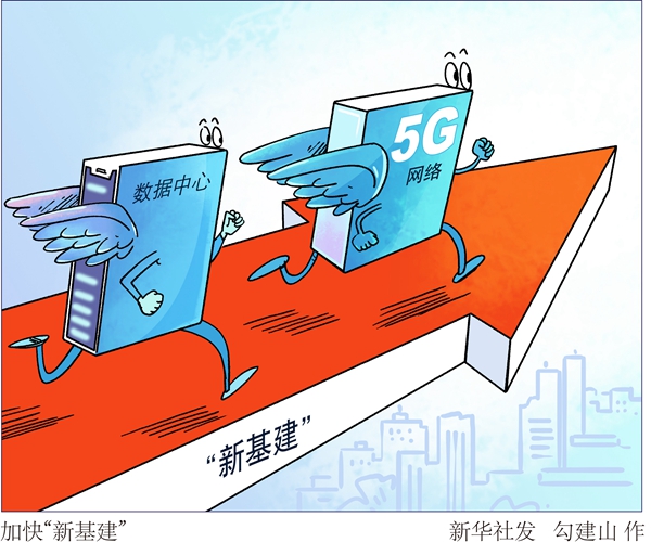 加快“新基建”、激发新动力正当其时。经过连续多年大规模投资,传统基建领域的存量基数已经很高。以数字型基础设施为代表的“新基建”却处在起步阶段,拥有广阔发展空间。新冠肺炎疫情发生以来,在线办公助力复工复产,云商业云服务便利社会生活,智能制造加速发展,这些都离不开“新基建”的有力支撑。有机构测算,到2025年,我国5G网络建设投资累计将达1.2万亿元。2020至2025年,5G商用直接带动的经济总产出将达10.6万亿元。一端连着巨大的投资与需求,另一端连着不断升级的消费市场,“新基建”有利于对冲疫情不利影响,为有效应对经济下行压力提供重要支撑点。