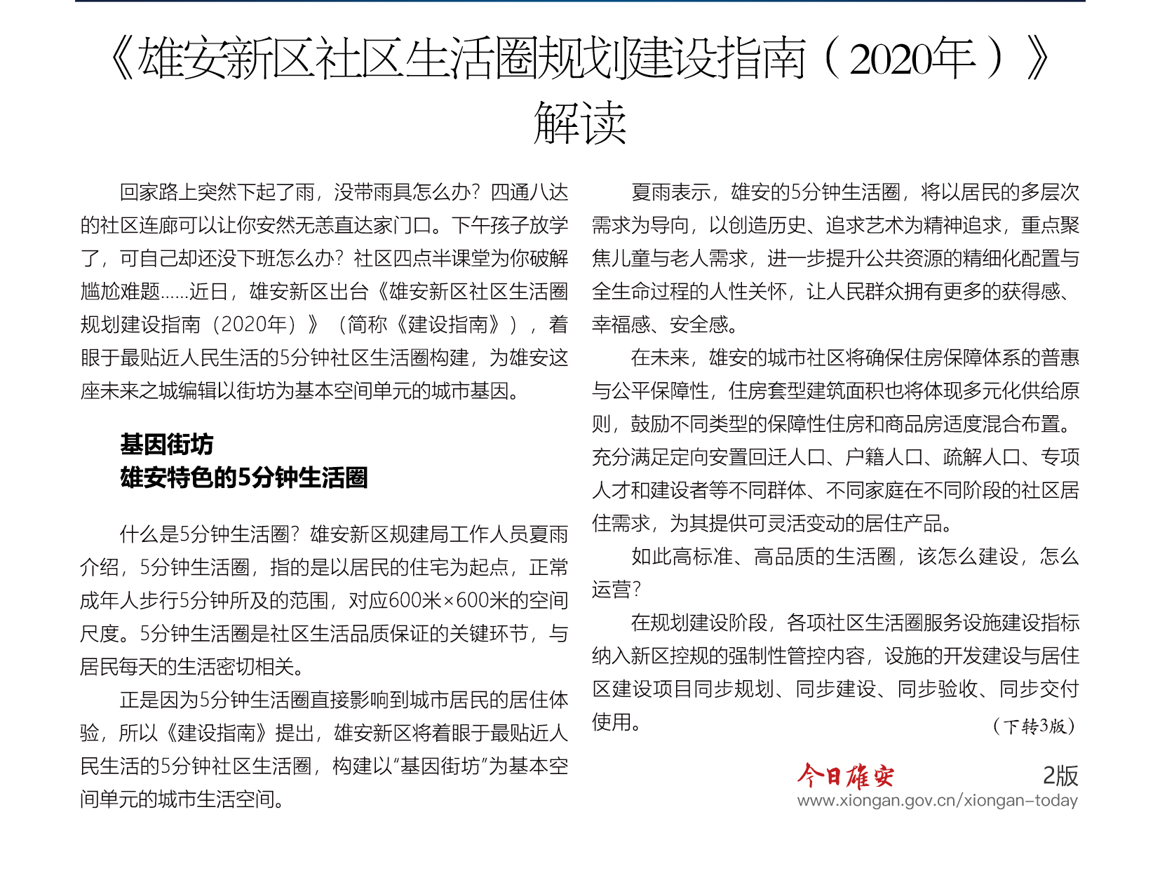 近日,雄安新区出台《雄安新区社区生活圈规划建设指南(2020年)》。