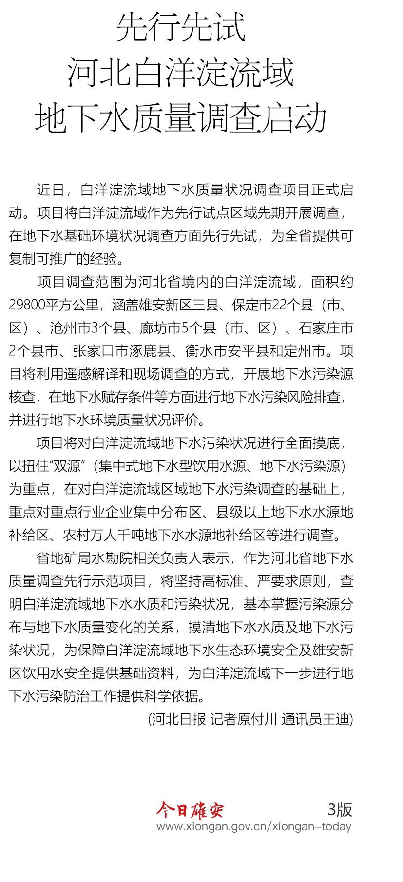 近日,白洋淀流域地下水质量状况调查项目正式启动。