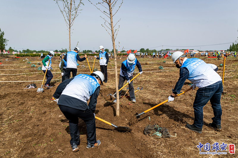 中国雄安官网4月18日电(记者 崔利杰)4月16日,位于雄县昝岗镇东河岗村的雄安新区2020年植树造林项目第六标段现场,一派热火朝天的植树景象。中国雄安集团党员学雷锋志愿者正在这里开展以“学雷锋义务植树 创国家森林城市”为主题的植树造林活动。雄安集团机关及各子公司志愿服务大队约200人参加活动。