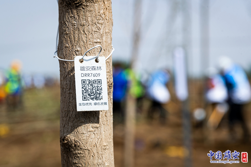 每棵树苗都有二维码“身份证”,链接进入雄安森林大数据建设管理平台。中国雄安官网记者马梦迪 摄