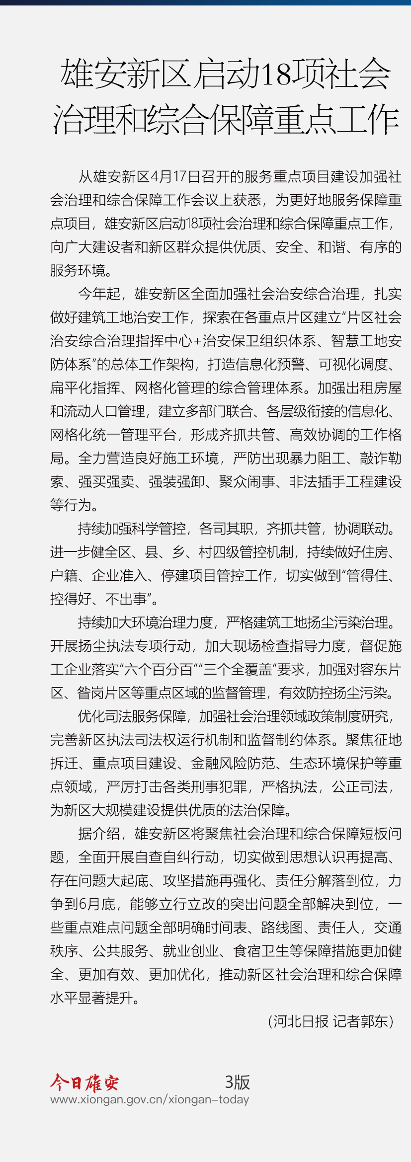 雄安新区召开服务重点项目建设加强社会治理和综合保障工作会议