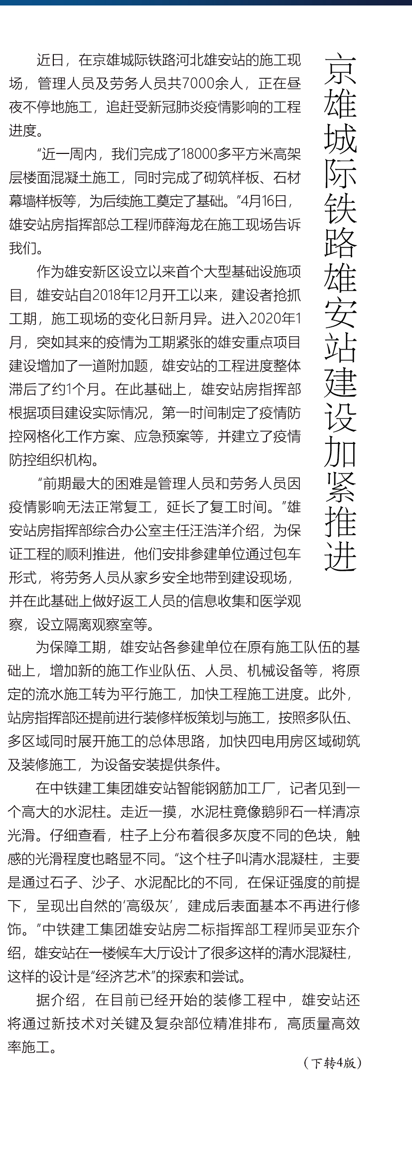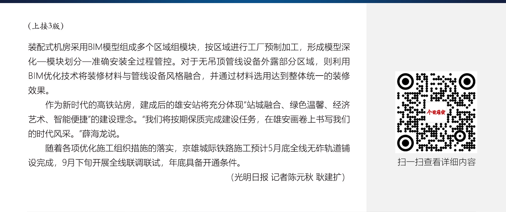 京雄城际铁路施工预计5月底全线无砟轨道铺设完成,9月下旬开展全线联调联试,年底具备开通条件。