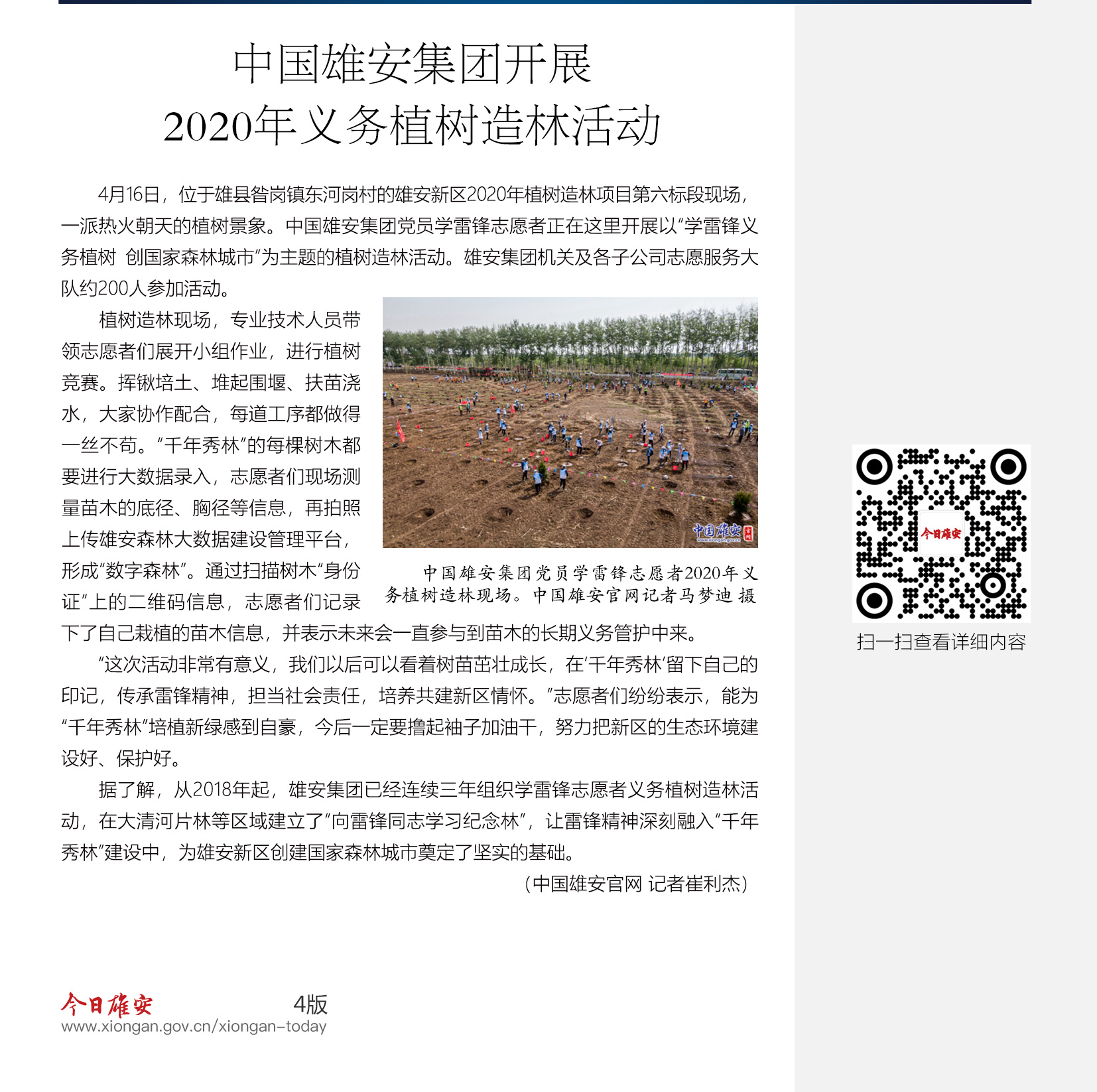 4月16日,位于雄县昝岗镇东河岗村的雄安新区2020年植树造林项目第六标段现场,一派热火朝天的植树景象。