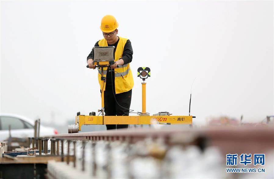 4月15日,工作人员在京雄城际铁路固安段施工。目前,在落实疫情防控各项措施的前提下,京雄城际铁路河北段按照节点有序推进工程建设。新华社发