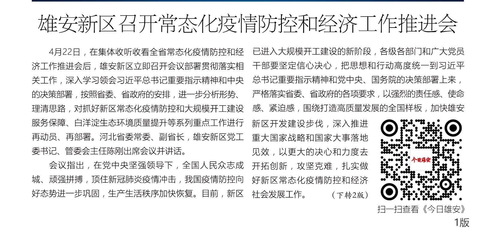 《今日雄安》 2020年4月22日 第292期