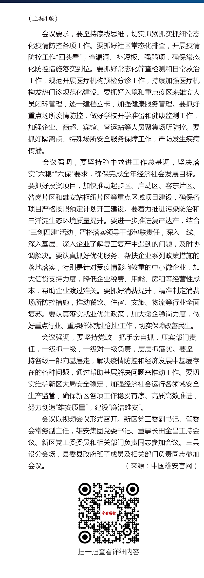 雄安新区召开常态化疫情防控和经济工作推进会
