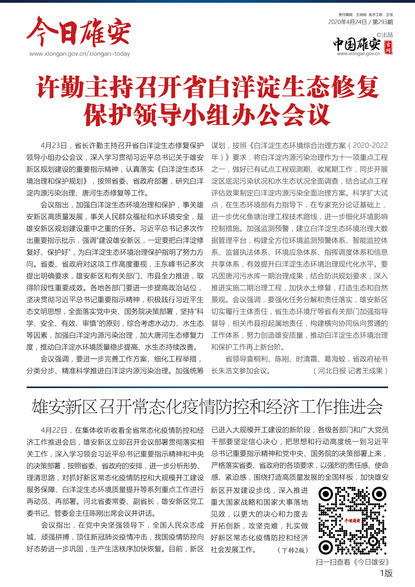 《今日雄安》 2020年4月24日 第293期