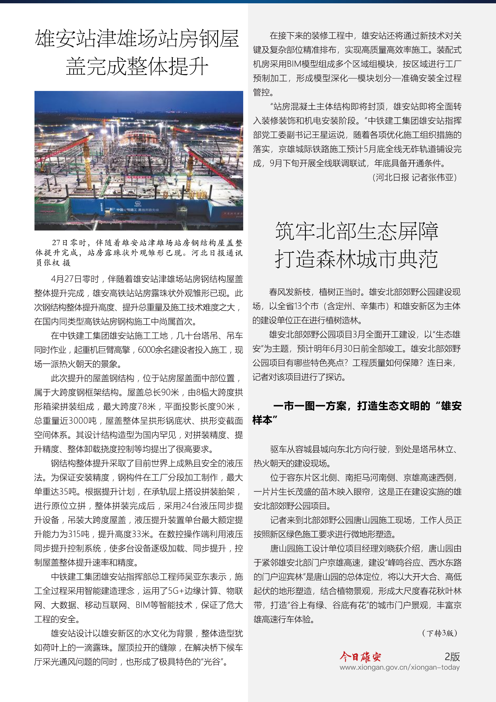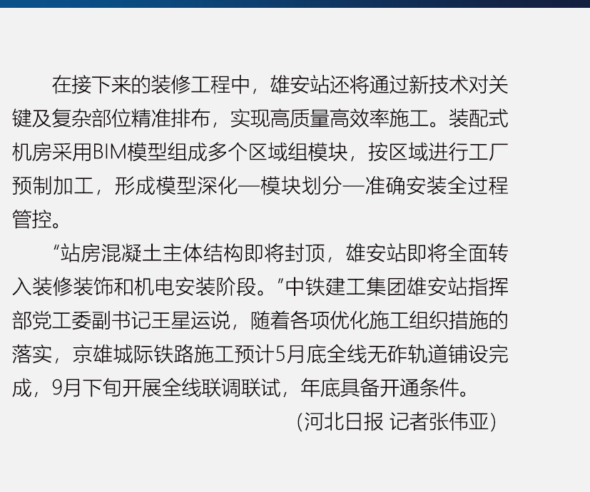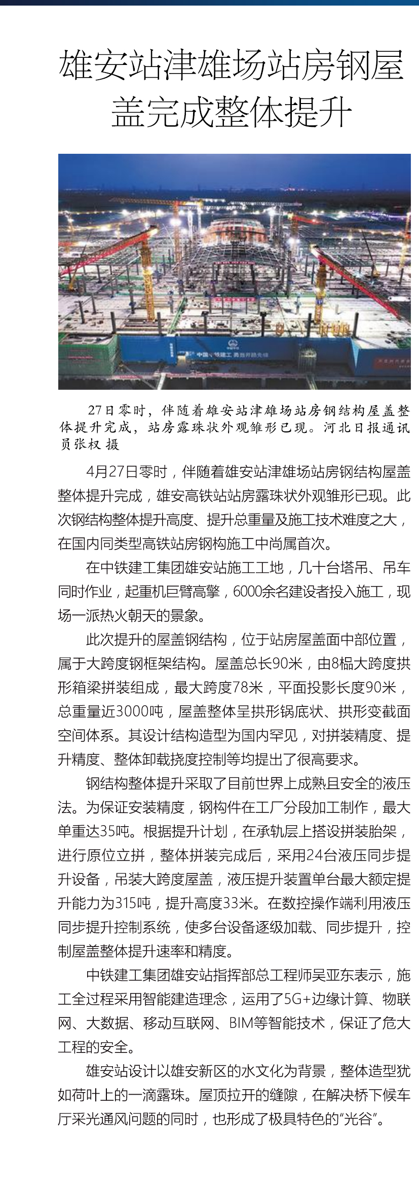 雄安站津雄场站房钢屋盖完成整体提升 露珠状外观雏形已现