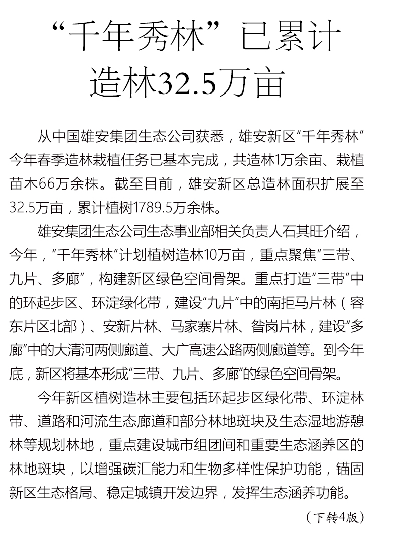 筑牢北部生态屏障 打造森林城市典范——雄安新区重点项目探访(三)