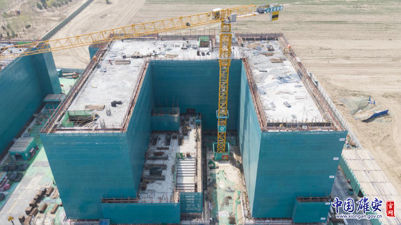 该项目是北京市援建雄安新区的“三校一院”项目之一,由北京城建集团有限责任公司承建,建筑结构为钢筋混凝土框架剪力墙结构。图为高中部教学楼建设现场。中国雄安官网记者牛思佳 摄