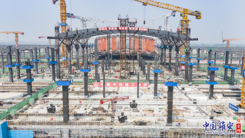京雄城际铁路雄安站混凝土主体结构正式封顶。中国雄安官网记者牛思佳 摄