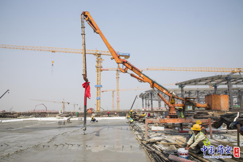 京雄城际铁路雄安站混凝土主体结构封顶现场。中国雄安官网记者牛思佳 摄