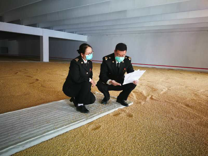 雄安海关关员在雄县粮库查验监管入境储备粮。中国雄安官网发