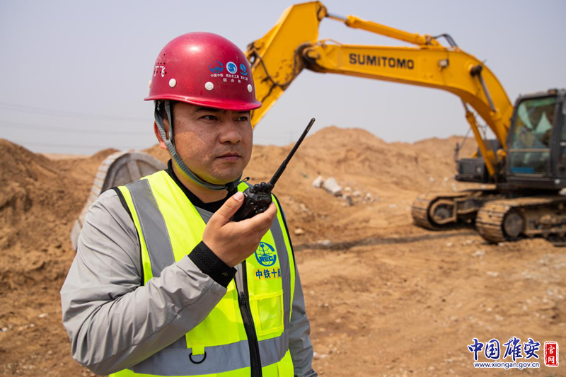 刘卿是南拒马河防洪治理工程(容城段)一标段项目经理。2019年5月1日,他来到雄安新区,到今年5月1日正好是一周年。主要负责的工作包括南拒马河右堤加高加固及改建工程、新建右堤东河引水闸、河槽整治工程、堤顶防汛路和上堤坡道建设及管理设施。图为刘卿正在建设工地上指挥作业。中国雄安官网记者高盟 摄