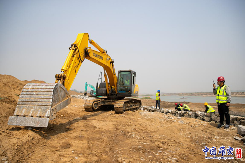 据介绍,南拒马河防洪治理工程是雄安新区起步区北部重要的洪水防线,是新区建设发展的支撑性、基础性工程。图为南拒马河防洪治理工程(容城段)一标段项目建设现场。中国雄安官网记者高盟 摄