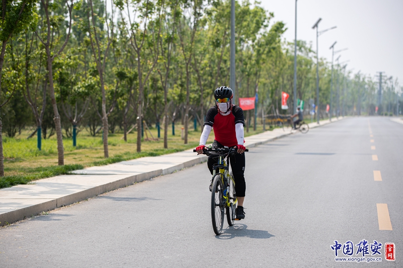 来自雄安新区安新县的梁先生选择在假期骑行,游览雄安新区美景。 中国雄安官网记者高盟 摄