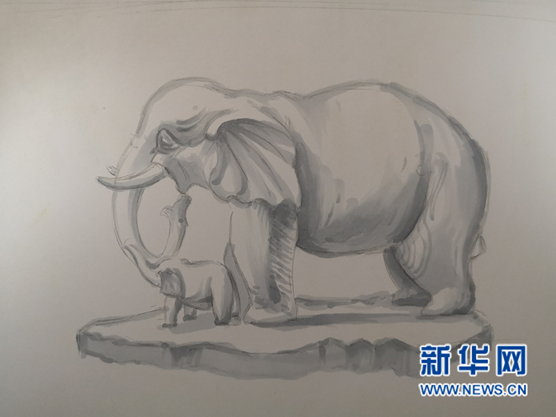 石雕大象憨态朴实。