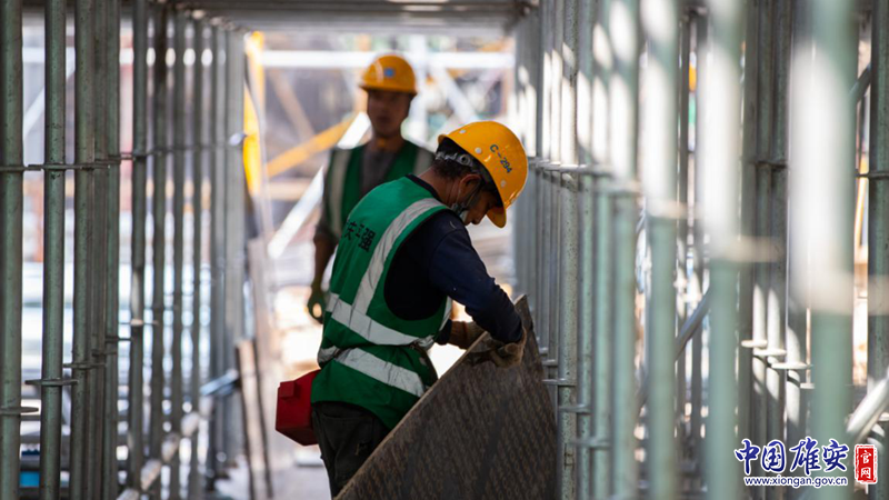 工人们在雄安商务服务中心项目工地上作业,以坚守岗位的方式度过假期。中国雄安官网记者高盟 摄