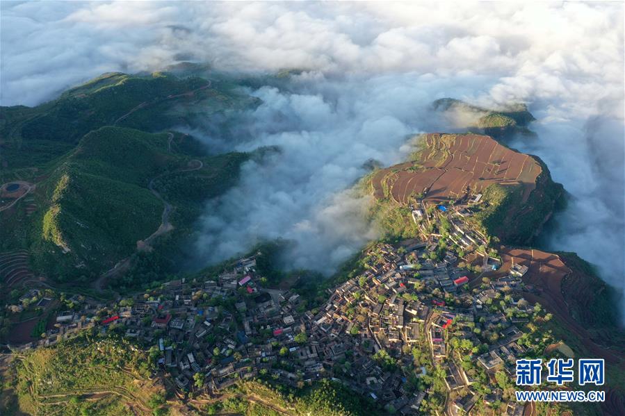 这是5月5日在河北省沙河市刘石岗乡渐凹村拍摄的云海景观(无人机照片)。5月5日,雨后的河北省沙河市刘石岗乡渐凹村云雾飘渺,村庄、山峦、梯田在云海中若隐若现,构成一幅美丽画卷。新华社记者牟宇 摄