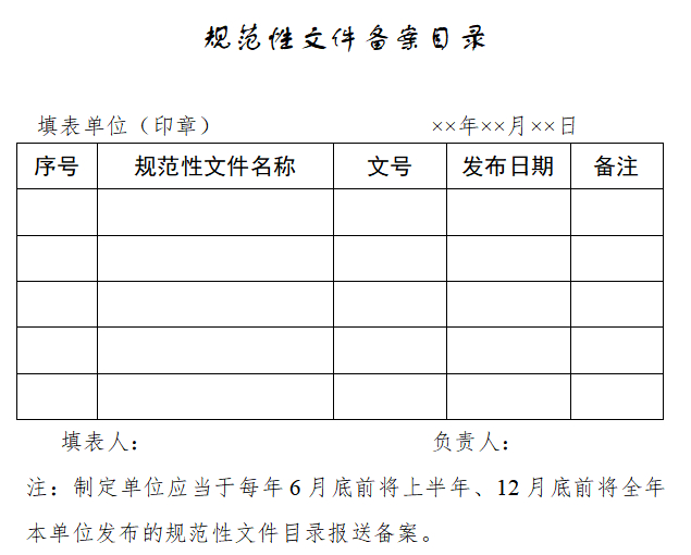 每年12月底前,备案机构应当将其上一年度制定和废止的规范性文件目录报送新区党群工作部备查。