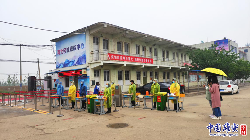 容城职教中心的老师们在学校门口维持秩序,安排同学们有序返校,保证学生不扎堆。中国雄安官网发