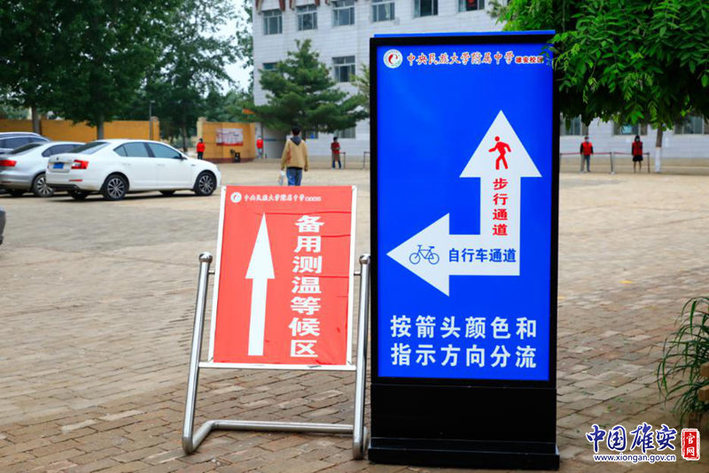 中央民族大学附属中学雄安校区初中部在校门口设置了导流指示牌。中国雄安官网记者毛鹤然 摄