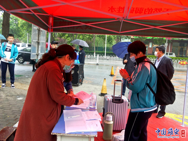 北京市第八十中学雄安校区(原安新县第二中学)初三年级学生返校进行填表登记。中国雄安官网发