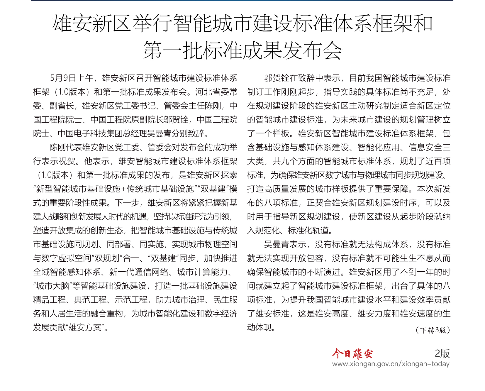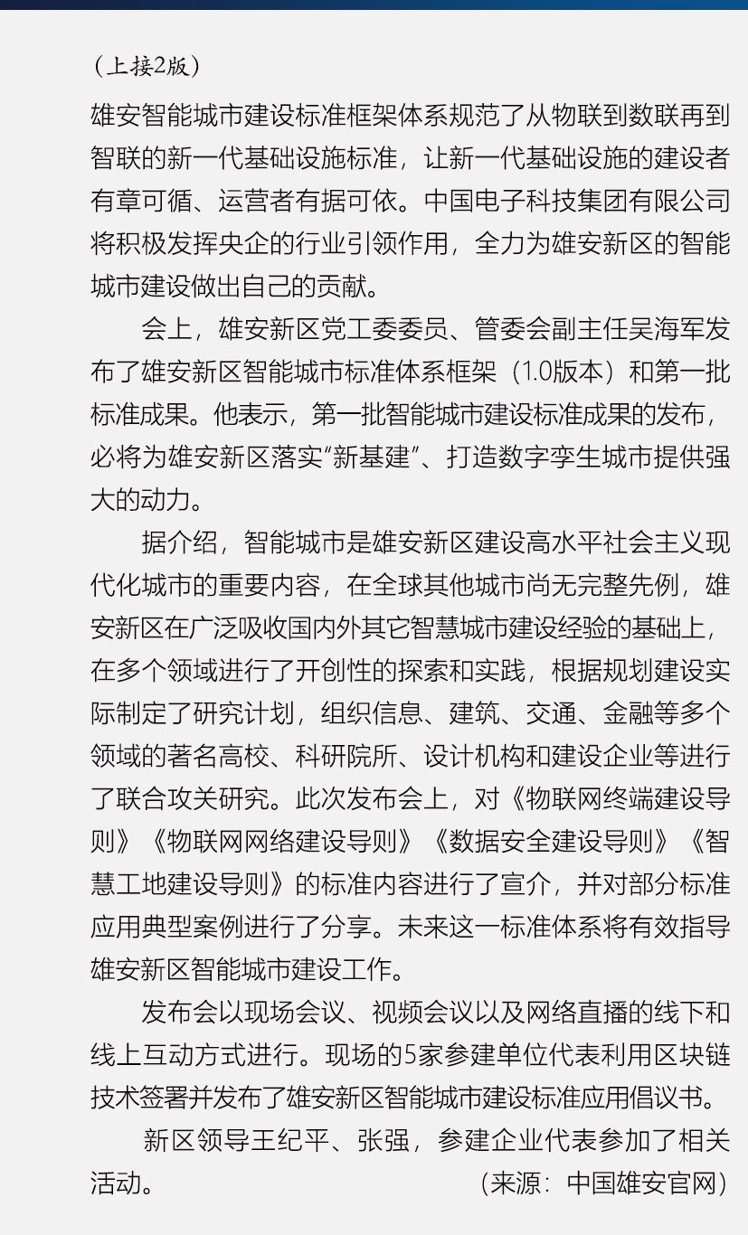 雄安新区举行智能城市建设标准体系框架和第一批标准成果发布会