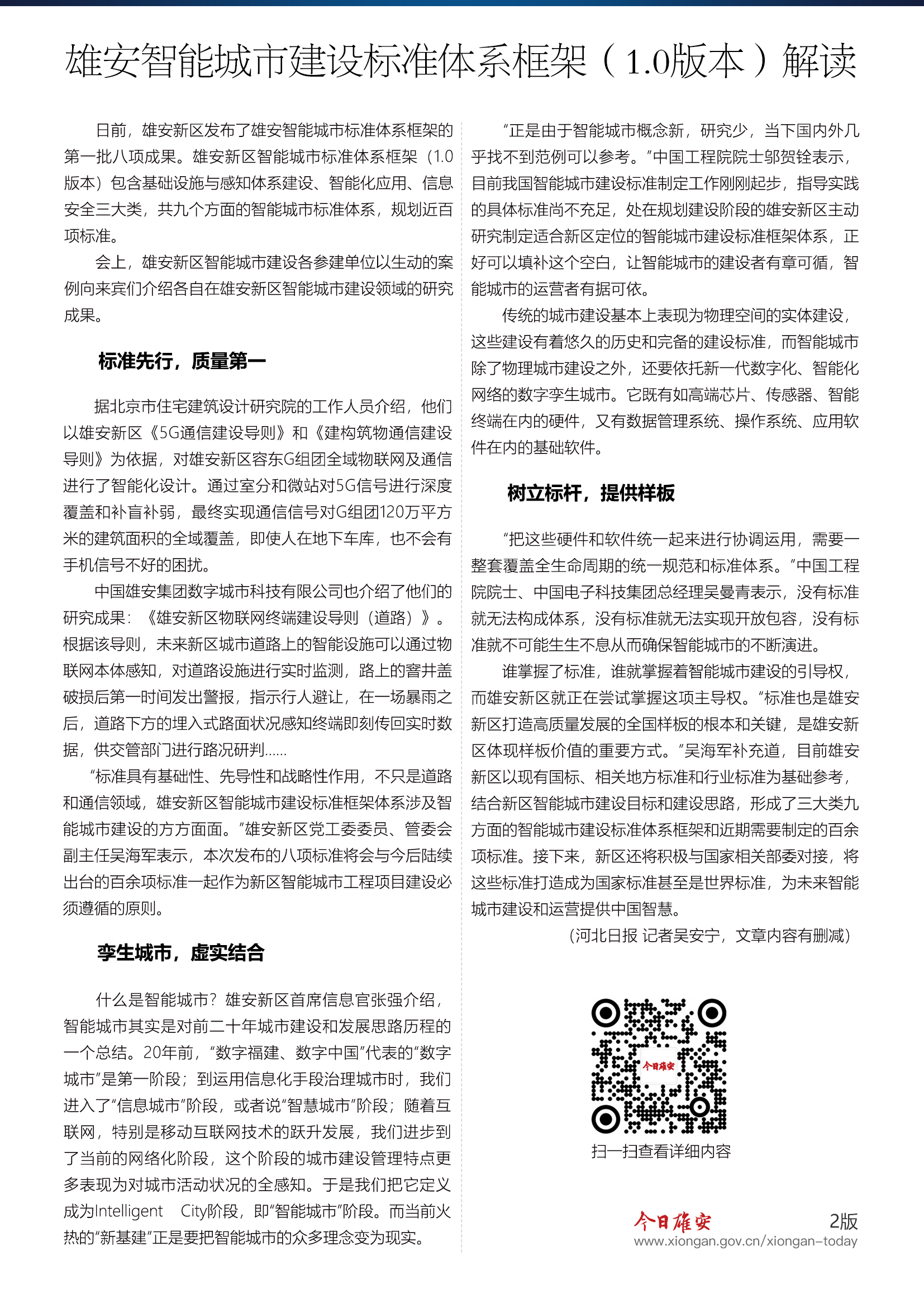 雄安举行智能城市建设标准体系框架和第一批标准成果发布会