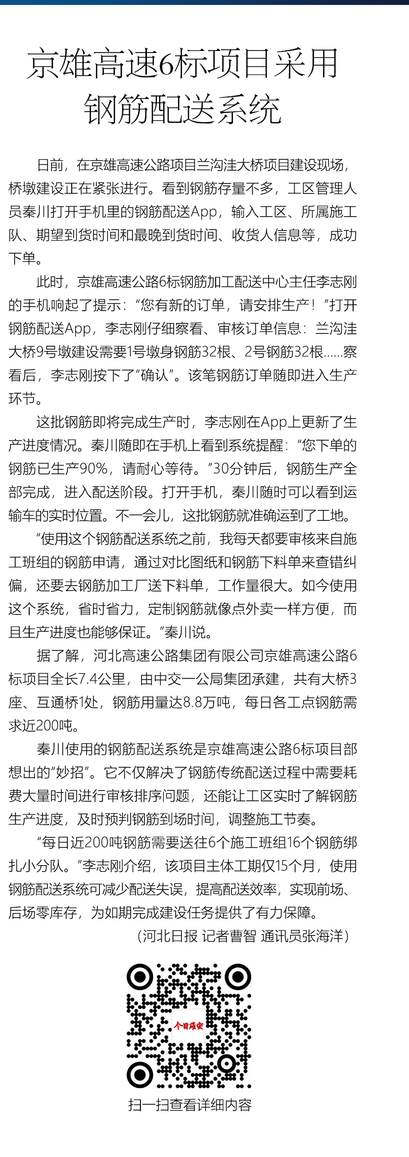 定制钢筋就像点外卖!京雄高速6标项目钢筋配送出新招