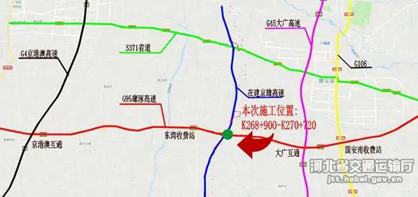 近日,河北省交通运输厅发布《关于京雄高速跨接廊涿高速施工的通告》提出,经有关部门批准,自2020年5月20日起廊涿高速公路(G95首都地区环线高速)廊坊至涿州段进行京雄高速公路东湾枢纽互通跨接廊涿高速公路(G95首都地区环线高速)施工。计划施工时间为2020年5月20日8时至9月20日24时。