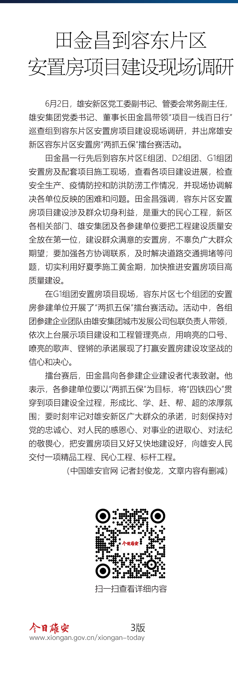 近日,雄安新区党工委副书记、管委会常务副主任,雄安集团党委书记、董事长田金昌到雄县调研包联企业,听取企业生产经营情况介绍,帮助协调解决企业面临的困难问题。