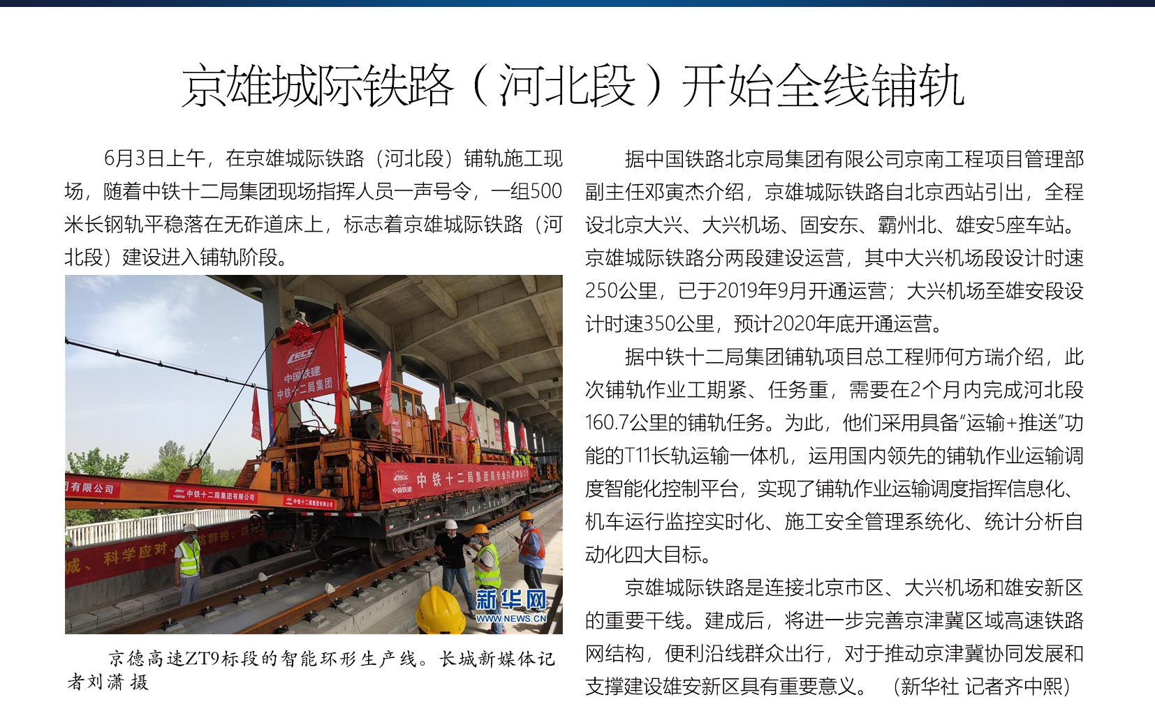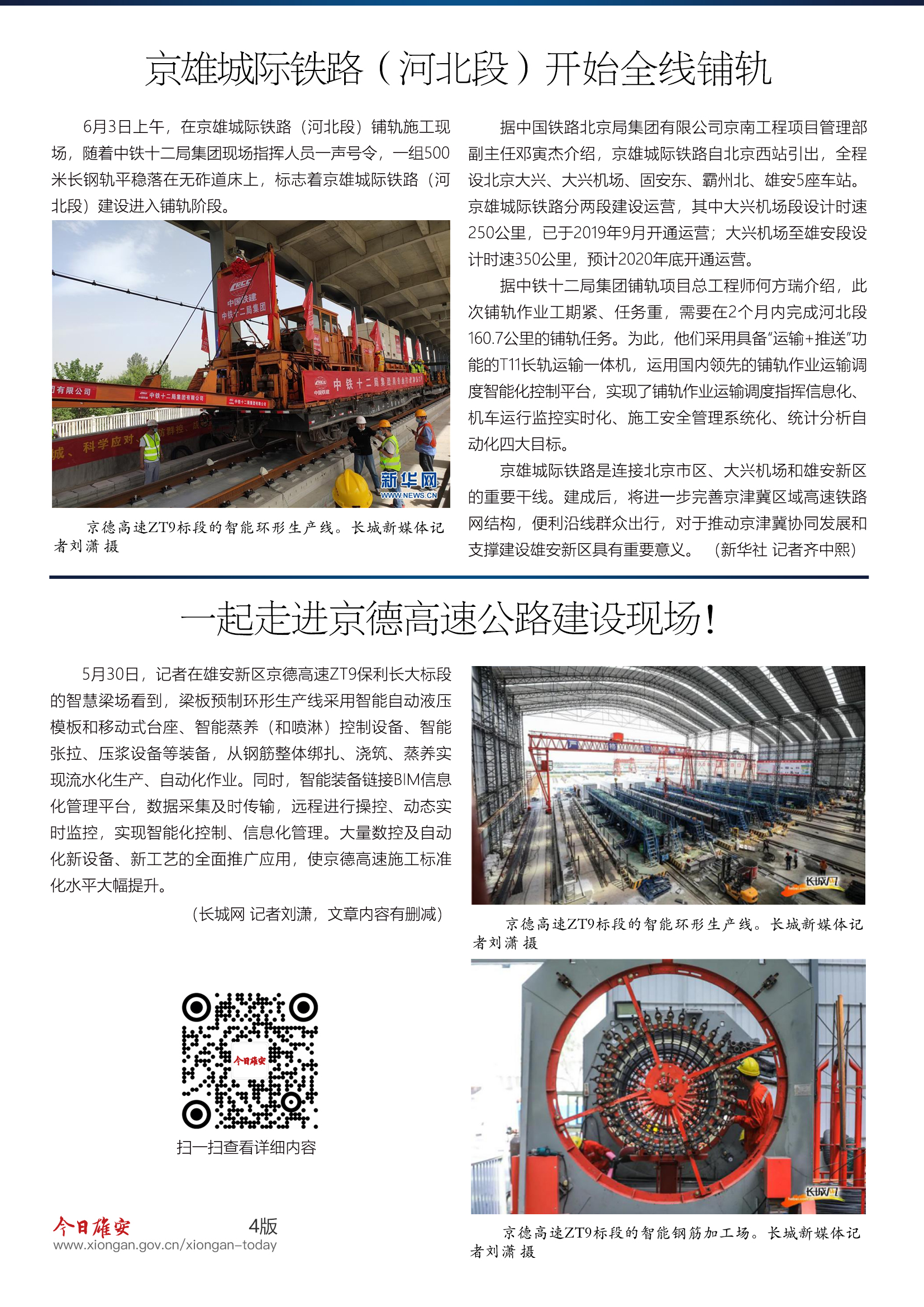 5月30日,随着长40米、重160吨的预制箱梁被稳稳吊升安放到预定台座,雄安新区首座特大桥、雄安站西侧干路项目新盖房特大桥首片预制箱梁吊装完成。