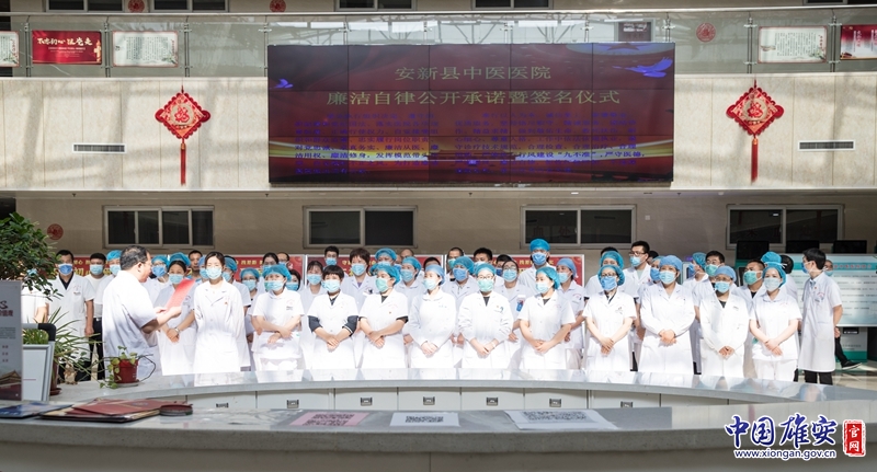 中国雄安官网6月5日电(李元闯)为加强医德医风建设,坚守医德良心,6月4日,雄安新区安新县中医医院举办廉洁自律公开承诺暨签名活动。安新县中医医院党支部书记曹永军、院长高伟出席活动。