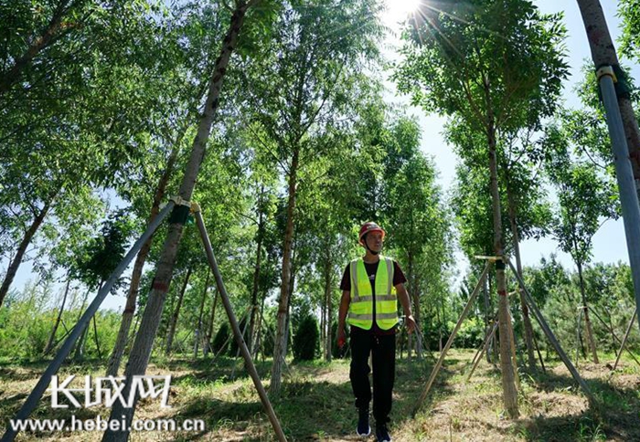 雄安新区自2017年11月启动“千年秀林”植树造林工程至今,已完成新造林32.5万亩,累计栽植苗木1789.5万余株。郁郁葱葱的林子不仅带来了美好的环境,还让众多雄安当地的农民有了新工作。51岁的高建勋就是雄安新区“千年秀林”众多护林员之一。